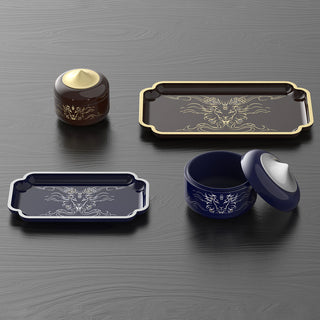 Sublime forms with contemporary line illustrations of iconic regional motifs, created in the age-old traditions of lacquer craftsmanship.