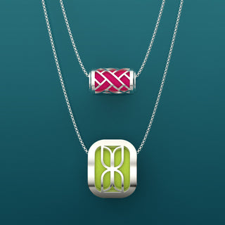 Gorgeous arm-candies customisable with a selection of interchangeable silk colours as well as clip-on medallions.